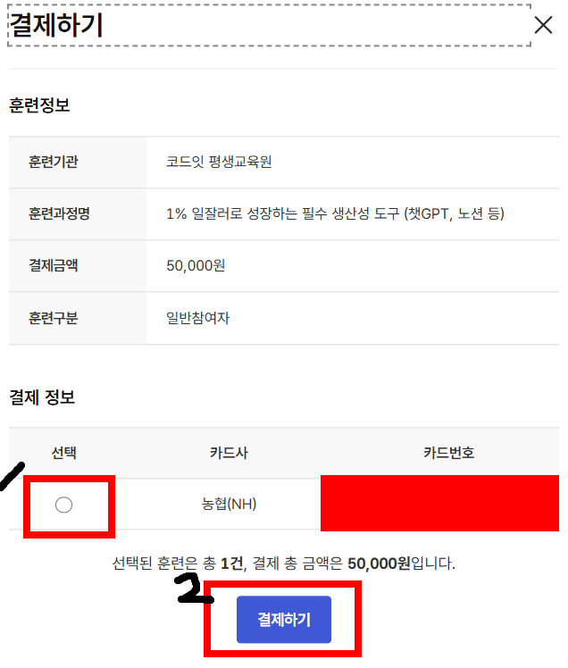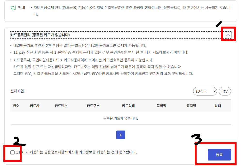 오프라인으로 만 교육을 받으신 분들은 카드등록이 되어있는지 확인해주세요. (저는 안되어있어서... 지금합니다.)