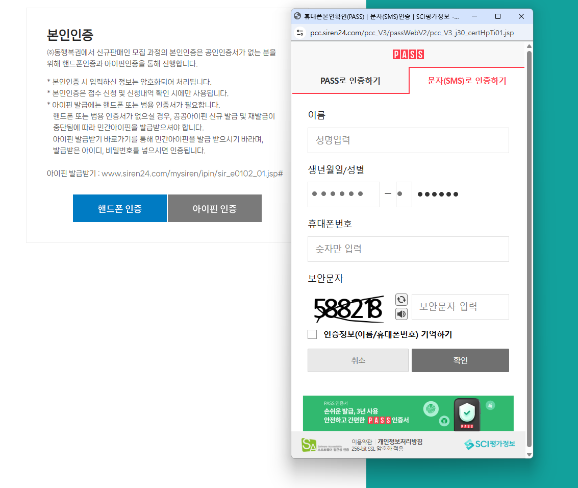 보통 다 휴대폰으로 하시니깐,,, 핸드폰으로 인증